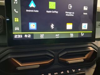 - Cu insertii de aluminiu pe partea inferioara a consolei centrale, piele sintetica pe usi si cu insertii de aluminiu pe bord