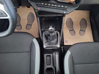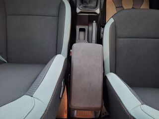 - Cu insertii de aluminiu pe partea inferioara a consolei centrale, piele sintetica pe usi si cu insertii de aluminiu pe bord